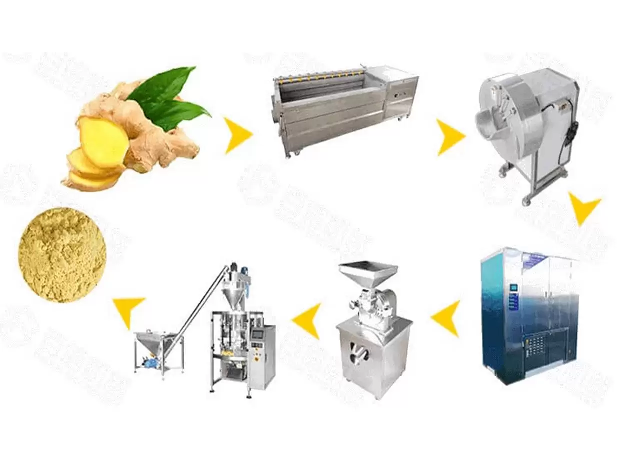 Линия по производству порошка имбиря использует имбирь в качестве сырья и перерабатывает имбирь в порошок имбиря с помощью таких методов обработки, как очистка, очистка, нарезка, сушка и измельчение. Удовлетворяйте кулинарные потребности различных домохозяйств, ресторанов и предприятий пищевой промышленности.